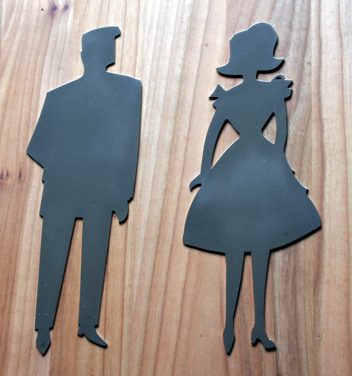 Hier WC Schilder aus Kunststoff die in jeder Farbe lackiert werden können. Preis: 18.- € .
